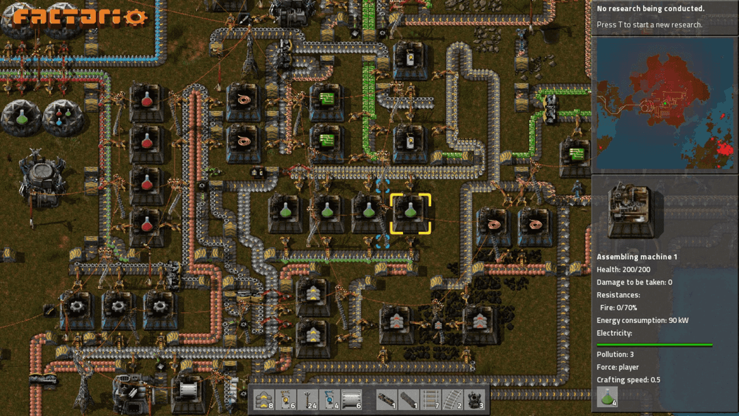 Factorio is a game in which you build and maintain factories. You will be mining resources, researching technologies, building infrastructure, automating production and fighting enemies. In the beginning you will find yourself chopping trees, mining ores and crafting mechanical arms and transport belts by hand, but in short time you can become an industrial powerhouse, with huge solar fields, oil refining and cracking, manufacture and deployment of construction and logistic robots, all for your resource needs. However this heavy exploitation of the planet's resources does not sit nicely with the locals, so you will have to be prepared to defend yourself and your machine empire. Join forces with other players in cooperative Multiplayer, create huge factories, collaborate and delegate tasks between you and your friends. Add mods to increase your enjoyment, from small tweak and helper mods to complete game overhauls, Factorio's ground-up Modding support has allowed content creators from around the world to design interesting and innovative features. While the core gameplay is in the form of the freeplay scenario, there are a range of interesting challenges in the form of Scenarios. If you don't find any maps or scenarios you enjoy, you can create your own with the in-game Map Editor, place down entities, enemies, and terrain in any way you like, and even add your own custom script to make for interesting gameplay. Discount Disclaimer: We don't have any plans to take part in a sale or to reduce the price for the foreseeable future.What people say about Factorio No other game in the history of gaming handles the logistics side of management simulator so perfectly. - Reddit I see conveyor belts when I close my eyes. I may have been binging Factorio lately. - Notch, Mojang Factorio is a super duper awesome game where we use conveyor belts to shoot aliens. - Zisteau, Youtube
