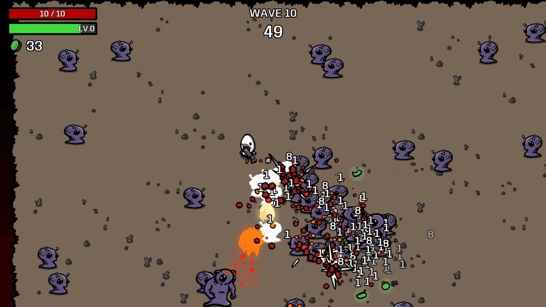 A spaceship from Potato World crashes onto an alien planet. The sole survivor: Brotato, the only potato capable of handling 6 weapons at the same time. Waiting to be rescued by his mates, Brotato must survive in this hostile environment. Features Auto-firing weapons by default with a manual aiming option Fast runs (under 30 minutes) Dozens of characters available to customize your runs (one-handed, crazy, lucky, mage and many more) Hundreds of items and weapons to choose from (flamethrowers, SMGs, rocket launchers or sticks and stones) Survive waves lasting 20 to 90 seconds each and kill off as many aliens as you can during that time Collect materials to gain experience and get items from the shop between waves of enemies Accessibility options: tweak the health, damage and speed of enemies so the difficulty is right for you